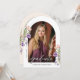 This arched graduation photo invitation is accented with peach and purple flowers and lush greenery. The elegant layout includes space for two photos and is adorned with delicate handwritten script. Personalize the back with your party details to complete the design.