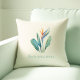 Elevate your space with our botanical Florida room decor ideas brought to life in this personalized decorative throw pillow. Featuring a vibrant bird of paradise flower and lush palm leaves, this original watercolor design by Victoria Grigaliunas captures the essence of Florida home decor and tropical living. The cream white background and rich turquoise blue-green accents make it a perfect fit for any tropical decor scheme.