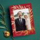 Botanical Frame Holiday Photo Red Gold Foil Card