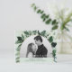 Modern Botanical Garden arched photo save the date in beige. Features couple photos and elegant painted leaves, watercolor Greenery, makes this wedding save the date cards is an ideal choice to announce your wedding date to family and friends. Perfect for outdoor garden themed spring or summer wedding. Designed with modern up to date arch style for modern wedding couples.