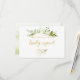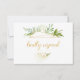 Green leaves, ferns, and pink flowers with "kindly respond" in gold calligraphy lettering in a geometric botanical-themed frame RSVP. The back of the card holds your details and is a watercolor splash in soft spring green. There are matching wedding invitations as well in this design. If you would like this design on a matching product, please email me at shutterbug600@yahoo.com. Be sure to include the link to this invitation in your correspondence. Graphics by OctopusArtis.etsy.com (http://octopusartis.etsy.com)