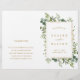 This wedding ceremony program features painted watercolor eucalyptus greenery, green leaves and elegant calligraphy. For more advanced customization of this design, Please click the "Customize further" link. Matching items are also available. NOTE: You will need to fold them in half when they arrive.