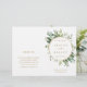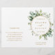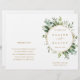 This wedding ceremony program features painted watercolor eucalyptus greenery, green leaves and a gold circular frame. For more advanced customization of this design, Please click the "Customize further" link. Matching items are also available. NOTE: You will need to fold them in half when they arrive.