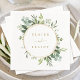 This wedding paper napkin features painted watercolor eucalyptus greenery, green leaves and a gold circular frame. For more advanced customization of this design, Please click the "Customize further" link. Matching items are also available.