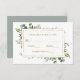 This wedding RSVP card features painted watercolor eucalyptus greenery, green leaves and a gold rectangular frame. For more advanced customization of this design, Please click the "Customize further" link. Matching items are also available