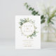 This wedding save the date postcard features painted watercolor eucalyptus greenery, green leaves and a gold circle frame. For more advanced customization of this design, Please click the "Customize further" link. Matching items are also available.