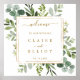 This wedding welcome sign features painted watercolor eucalyptus greenery, green leaves with a gold square frame. For more advanced customization of this design, Please click the "Customize further" link. Matching items are also available.
