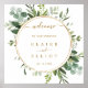 This wedding welcome sign features painted watercolor eucalyptus greenery, green leaves with a gold round circular frame. For more advanced customization of this design, Please click the "Customize further" link. Matching items are also available.