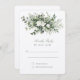Extend the invitation to respond with this elegant RSVP card, bordered by a flourishing design of white roses and a full spectrum of greenery, from the lightest pistachio to the richest fern green. The card is graced with a sophisticated script, inviting guests to reply by a specified date, and provides options for attendance. The design balances the formality of a traditional response card with the fresh, contemporary appeal of botanical illustrations, making it a beautiful way for guests to confirm their participation in your special day.