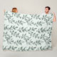 Botanical Green Leaf Pattern Cozy Fleece Blanket
