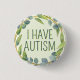 Botanical Green Leaves Text Autism Button