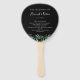 Modern botanical watercolor greenery bouquet, program hand fans. Features solid black color background. Elegant typography design style template.
