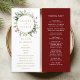 This wedding program features painted watercolor eucalyptus, green leaves, red berries, pine branches, and a faux gold circle frame with a red background on the back. For more advanced customization of this design, please click the "Customize further" link. Matching items are also available.