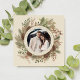 Botanical greenery christmas photo black square holiday card