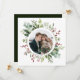 This Christmas | Holiday save the date flat card features painted watercolor eucalyptus, green leaves, red berries, pine branches with a circle photo and custom text on the back. For more advanced customization of this design, please click the "customize further" link. Matching items are also available.