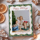 Botanical Greenery Pattern Happy Holidays 1 Photo Holiday Card