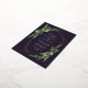 Chic summer wedding foil postcard invitation featuring watercolor botanical greenery and gold geometric frame with stylish and modern typography displaying your details against a dark purple background.