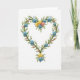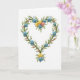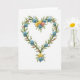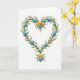 This greeting card features a large heart shape formed by curling green vines on a white background, with the open center giving it an airy, intimate feel ❤️. Deep forest-green stems sweep upward and meet at the top, as if leaning toward each other in a gentle embrace, and small fresh leaves add soft texture along the curves. Clusters of five-petaled flowers decorate the upper edges and the pointed base, mixing bright blue, sunny yellow, and light pink blooms that feel like little tokens exchanged between close friends. Each flower has a small yellow center, and a few tiny lavender and rosy buds are sprinkled around like quiet, affectionate accents. The lighting is soft and even, giving the petals and leaves a slightly raised look, like carefully layered cut shapes. A short greeting appears near the top center in a simple dark-green font, leaving plenty of open space to keep the heart as the main focus 🌼. Near the bottom, a smaller line of text sits just below the heart’s point in a lighter green, aligned neatly with the center. Blue, yellow, and blush blossoms sit at the heart’s top curve and at the tapered tip, with scattered buds floating lightly around the vines.