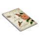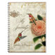 COLOR PALETTE: Chocolate brown, peach, tan, cream, rust, orange, red, coral and pink with lime green. DESIGN COLLECTION: BOTANICAL HUMMINGBIRDS -This elegant and sophisticated custom personalized journal or notebook, blends classic vintage artwork and contemporary original art by Audrey Jeanne Roberts. The background color on this is a antiqued parchment with a textured tan finish. Vintage art elements include a peach coral camellia with dark green leaves, elegant orange and brown carved etchings from printer's ornaments, antique postcard elements, cancelled postage that is antiqued and handwriting from old letters. The contemporary art elements include mustard yellow leaf swirl designs, antiqued parchment background, a pen and ink bird and 3 beautiful botanical hand painted hummingbirds, the other two are Rufuous Hummingbirds.