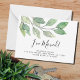 This moving announcement mini card is decorated with minimalist watercolor foliage in shades of green.