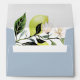 Chic solid light dusty blue color 5x7 envelope with return address on back flap. Envelope is lined with botanical lemons, leaves and blossoms branch.