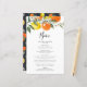 Botanical menu card perfect for summer weddings and other events. It features watercolour illustrations of oranges, lemons, orange blossoms and greenery with a matching citrus pattern. Personalize this citrus menu card by adding names, date, time and other menu details.