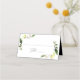 Elegant watercolor botanical lemons, leaves and blossom frame, wedding place cards.