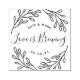 Custom-designed wedding favor rubber stamp featuring modern elegant hand-drawn leaves and branches design. Personalize with bride and groom/couple's names and wedding date for a touch of style on wedding coffee grounds/beans or tea favors and gifts.