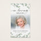 Keep the memory of a loved one close with this custom personalized prayer card featuring one beloved photo, the sentiment FOREVER IN OUR HEARTS, name and dates on the front and an editable heartfelt message or a meaningful poem, bible verse or quote and soft watercolor greenery. It makes a meaningful keepsake to share at a funeral, memorial service or Celebration of Life and offers comfort and a lasting tribute for family and friends. Its small and portable size of 3.5x2" (wallet-sized) makes it convenient for loved ones to carry it with them as a reminder of your loved one’s life and spirit. Personalization makes each card unique.