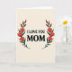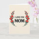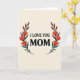 This card features the words “I LOVE YOU MOM” in large black letters centered on a creamy off‑white background, with an affectionate, close-to-the-heart feel ❤️. The message sits as the main focus, and the generous spacing around it gives it room to breathe. On both the left and right sides, matching floral branches rise upward and curve gently inward, as if leaning toward the words like a warm embrace. The blossoms are a deep coral-red with a softly textured, painted look, adding a romantic warmth without needing extra decoration 🌼. Dark emerald green leaves and thin stems fill out the branches, creating a natural frame that guides your eyes back to the center. The text is placed in the middle of the card and stands out clearly in black against the light background. The floral arrangements mirror each other closely, with clusters of flowers near the upper sides and foliage tapering along the curves. The background remains smooth and uncluttered, highlighting the symmetrical coral blooms and rich green leaves on either side of the centered black text.