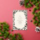 Botanical leaves and vines design foil border with off white background and light gray text at center.