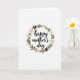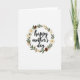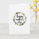 The front design shows a floral wreath arranged on a white background, framing a gentle message of affection like a quiet hug ❤️. In the center, the text “happy mother’s day” sits neatly, written in flowing, cursive-style lettering in a soft, medium-gray tone. The wreath’s creamy blossoms open with tender petals and warm golden centers, suggesting a caring gaze without needing any characters at all. Around the flowers, leafy sprigs in olive and deep forest green mingle with a few muted brown leaves, giving the border a cozy, close-knit feel. Tucked between the greenery are several textured pinecones that add a natural, earthy contrast, like a thoughtful detail chosen with care. Small golden berries dot the ring and catch the light with a subtle glow 🌼. The circular arrangement is evenly balanced, with the cream flowers and pinecones spaced around the wreath and the gray center text remaining clearly readable. Cream blossoms with golden centers, green foliage, brown leaves, pinecones, and tiny golden berries form a complete ring around the centered gray wording on the white field.