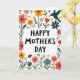 Designed with a creamy off-white background, this Mother’s Day card centers on a white rectangular frame that holds the words “HAPPY MOTHER’S DAY” in black, hand-drawn lettering. Around the frame, a garden border of stylized flowers wraps in close, as if leaning in with friendly affection ❤️. Coral blooms, sunny yellow petals, deep red blossoms, and calm teal leaves mingle along the edges, creating a cozy, springlike setting. Small sprigs and scattered leaves fill the gaps, guiding your eye in a gentle loop back to the message. The main text sits squarely in the middle, while the floral shapes stay mostly around the perimeter so the greeting remains easy to read. In the upper right, a jewel-toned winged creature hovers near the flowers, and below it a striped buzzing insect drifts under the frame as if drawn toward the blooms 🌼. The black lettering sits inside the crisp white frame, with coral, yellow, red, and teal florals surrounding it on the soft off-white field.