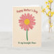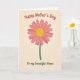 This card shows a single stylized flower centered on a smooth, creamy background, with a gentle, affectionate feel in the way the petals open outward like an inviting embrace ❤️. The petals are shaded in soft pink tones with a light gradient that gives each section a tender, romantic softness. In the middle, a warm yellow circle dotted with tiny specks draws the eye like a sunny glow. A thin green stem extends down from the bloom, adding a fresh contrast against the pale backdrop. Near the top, the text “Happy Mother’s Day” sits above the flower in deep red, written in flowing cursive-style lettering. Below the flower, “To my beautiful Nana” appears in matching green, also in flowing cursive-style lettering, echoing the stem’s color and tying the layout together 🌼. The flower’s pink petals surround the dotted yellow center, while the slim green stem runs straight down into the open space beneath.