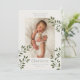 Celebrate your baby’s arrival with this elegant botanical birth announcement card. Featuring a soft neutral background, delicate green leafy accents, and space for your newborn’s photo and birth details, this design blends modern simplicity with timeless charm. Perfect for sharing your joyful news with family and friends.