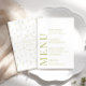 Enhance the charm of your romantic classic wedding celebration with this sophisticated and polished menu card. Featuring an intricate pattern adorned with delicate olive green flower blooms, this beautiful design is elevated with personalization, showcasing the names of the bride and groom on the back.