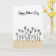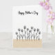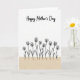 This card features a wide white upper area with a family-focused message centered near the top in flowing black lettering, giving the page a tender, close-to-the-heart feel ❤️. The letters curve smoothly and look slightly varied in thickness, like they were written with a pen that glides, adding a gentle, intimate tone without crowding the space. Below the words, the design shifts into a sandy beige band that stretches across the bottom, like a soft ground line. From that beige base, slim flower stems rise in simple black outlines, their buds leaning toward one another as if sharing a quiet moment 🌼. Small leaves sprout along the stems, and the blossoms resemble early spring tulips or newly opened buds. The contrast stays minimal—black linework against white and beige—so the eye moves easily from the message down to the garden-like border. Along the bottom edge, the beige area has a lightly speckled texture, and the outlined flowers cluster in a calm, even row.