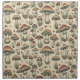 Dinner napkin in a woodland-inspired, botanical pattern of intricately illustrated mushrooms in earthy tones of brown and beige, surrounded by delicate grasses and wildflowers, rendered in a hand-drawn, vintage style against a soft cream background.