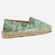 These espadrilles feature a delicate botanical pattern in a palette of subtle greens, evoking a serene, nature-inspired aesthetic. The soft fabric upper is adorned with stylized leaves creating a harmonious blend of texture and color. Lightweight and breathable, they’re perfect for relaxed summer days, effortlessly pairing with linen trousers, sundresses, or rolled-up chinos for a casual yet refined look.