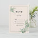 A delicate floral wedding RSVP invitation, adorned with botanical pink, ivory, and mint flowers, and soft greenery.