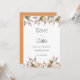 This gorgeous wedding invitation design features a lovely watercolor pink, and orange elegant summer flowers Wedding Save the Date invitations that are perfect for any classy and elegant ceremony. This country garden floral is perfect for the trendy and stylish couple. Customize this design with your message and personalized information. All designs are printed.