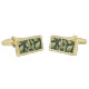Cufflinks shown in a gold-plated finish in a lovely green tone botanical print.