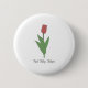 A button with a botanical red tulip flower illustration in pastel colors and a customizable text: perfect for a birthday gift.