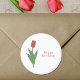 A sticker with a botanical red tulip flower illustration in pastel colors and customizable text such as "Happy Birthday" or "Thank You": perfect for birthday friends, wedding, small business, lovers of flowers, etc. Tulip is the April birth flower, the flower of Aries and is symbolic meanings of perfect and deep love.