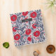 Watercolor inspired red white and blue poppies pattern with botanical greenery. Personalize name inside gray rectangle at front.