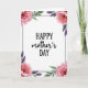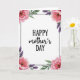 Designed with a calm, romantic look, this card centers a celebratory message on a bright white background, surrounded by a soft botanical border that feels like a gentle embrace ❤️. The main text sits in the middle, mixing upright black lettering for emphasis with smoother, flowing black lettering for a tender, intimate touch. A thin black rectangular outline frames the words, keeping the layout neat while letting the flowers do most of the talking. In each corner, large multi-petaled blooms in soft rose and blush pink show ruffled layers, with warm golden-brown centers that draw the eye. Between those corner flowers, small clustered blossoms in lavender tones stretch along the sides, adding a quiet contrast that reads like a friendly nod 🌼. Deep green leaves curl and fan outward around the petals, creating a natural frame that feels close and caring rather than formal. The border forms a garland-like ring around the centered message, with pink corner blossoms, lavender sprigs, and green foliage set just outside the fine black inner frame.