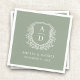 Botanical Sage Green Crest Wedding Monogram Napkins