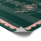 Wedding theme featuring text inside hand drawn pink frame with pink floral botanical line drawing over emerald green stripe background.