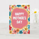 A warm message of Mother’s Day sits at the center inside an irregular, soft pink label, giving the layout a cozy, affectionate feel ❤️. The words “HAPPY MOTHER’S DAY” appear in rounded white letters with a faint shadow, making the text stand out clearly. A layered border in warm, earthy tones wraps around the pink label, gently separating the message from the surrounding decoration. Around the edges, stylized flowers fill the space in cheerful yellows, deep teal, bright reds, light pinks, and warm oranges, like a bouquet gathered with care. Each blossom has a simple shape with a darker dotted center, and thin dark green sprigs weave between petals, adding a tender, garden-like closeness 🌼. The background is a soft creamy beige, keeping the overall look calm while letting the florals and lettering draw the eye. The message is centered while the floral elements cluster along the perimeter, creating a frame that feels like a hug around the words. The flowers feature rounded petals and dotted centers, with scattered green sprigs set against the creamy beige backdrop.