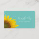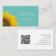 Whimsical sunflower QR code business card, with a yellow country floral image on a teal green background. With typography lettering, you can customize with your own name or title. The back of the card has a white background and black customizable lettering. A modern professional way to get the word out about your business.